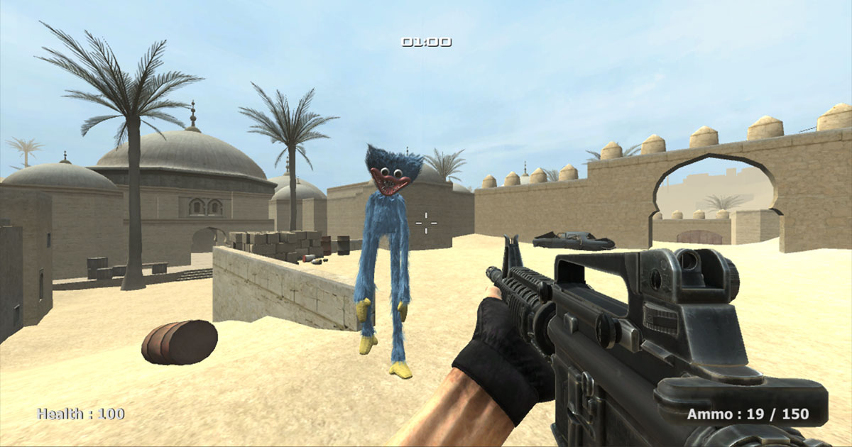 Poppy Strike es un videojuego de tiro en 3D que presenta el modo de juego con armas, contando con un amplio repertorio de armamento y el célebre mapa Dust 2 lleno de Huggy Wuggy. Tu misión es eliminar a todos los Huggy Wuggy que se acerquen y tratar de subsistir hasta el final de cada ronda para conseguir nuevas armas.